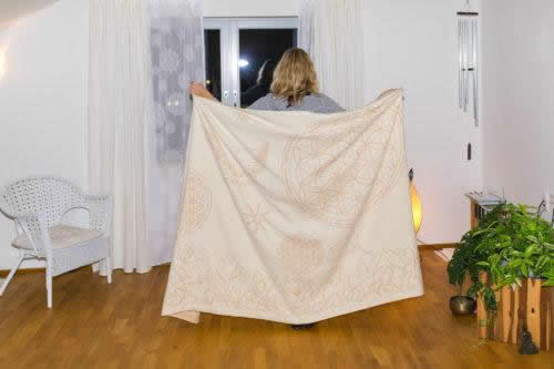 Unsere wunderbare Bio-Baumwolldecke hat eine so feine Kraft die nicht nur deine Achtsamkeit herausfordert, sondern ebenfalls tiefe Ruhe spendet. In einer Meditation kann sie dich weit forttragen bis hin zu einem übergeordneten Dasein, ins Licht, in die unendliche Liebe und den Frieden.