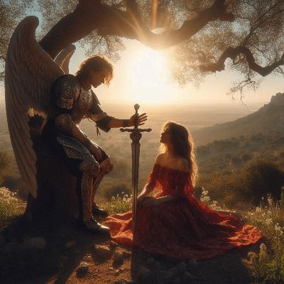 Schau mich an. Ich habe dir ein Schwert mitgebracht. Es ist ein funkelndes goldenes Schwert mit Edelsteinen besetzt. Es wirkt sehr kostbar, und du denkst sicher, dass es schwer an Gewicht ist. Das Schwert ist leicht, so wie der Weg der Liebe, wenn man sich darauf einlässt. Liebe ist das, woraus alles erschaffen ist. Es ist Göttliches Manna. Das Schwert, das ich für dich mitbrachte, soll dir helfen, dein Leben leichter und mit dem Göttlichen Blick zu sehen, zu fühlen und zu leben. Erwarte viel.